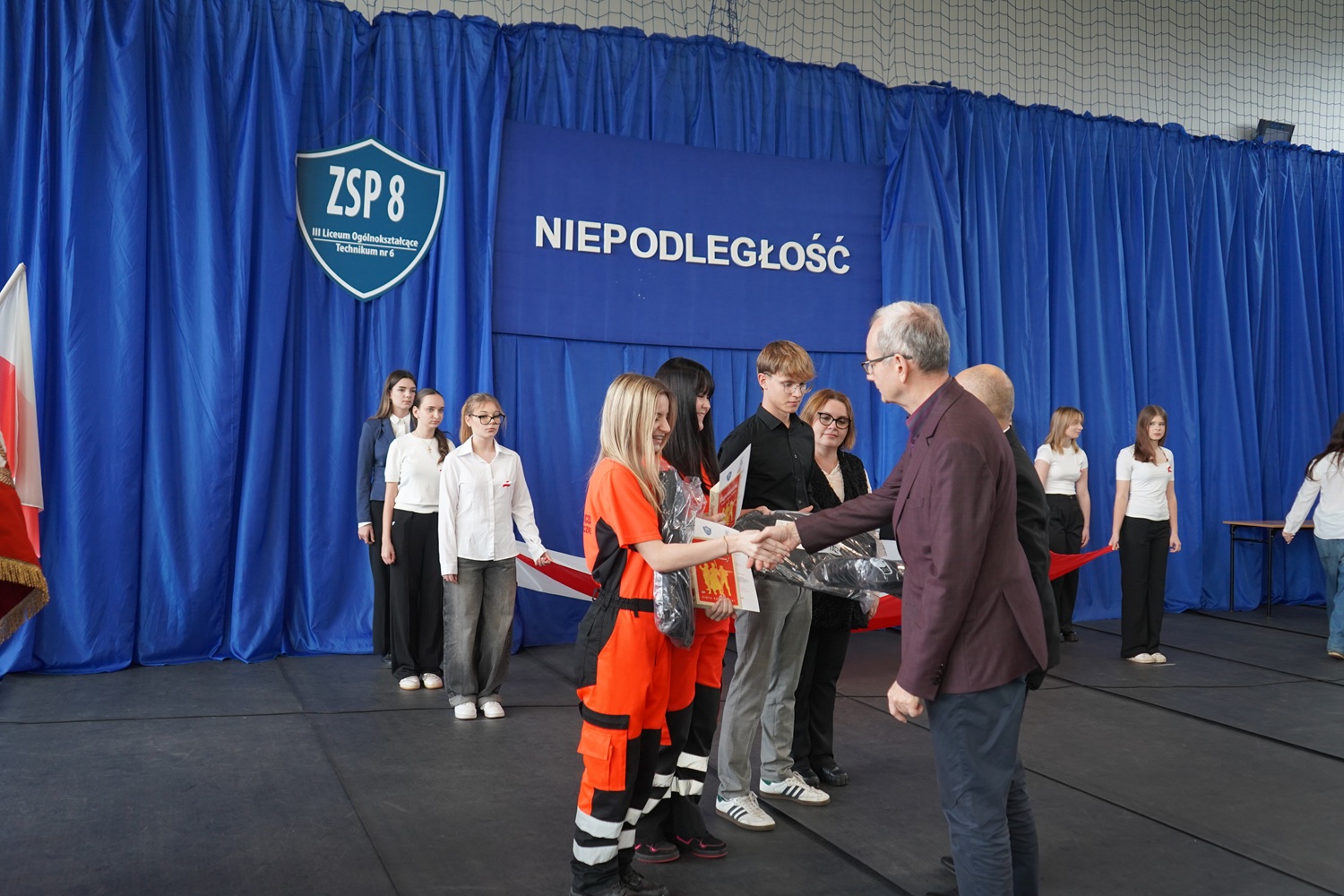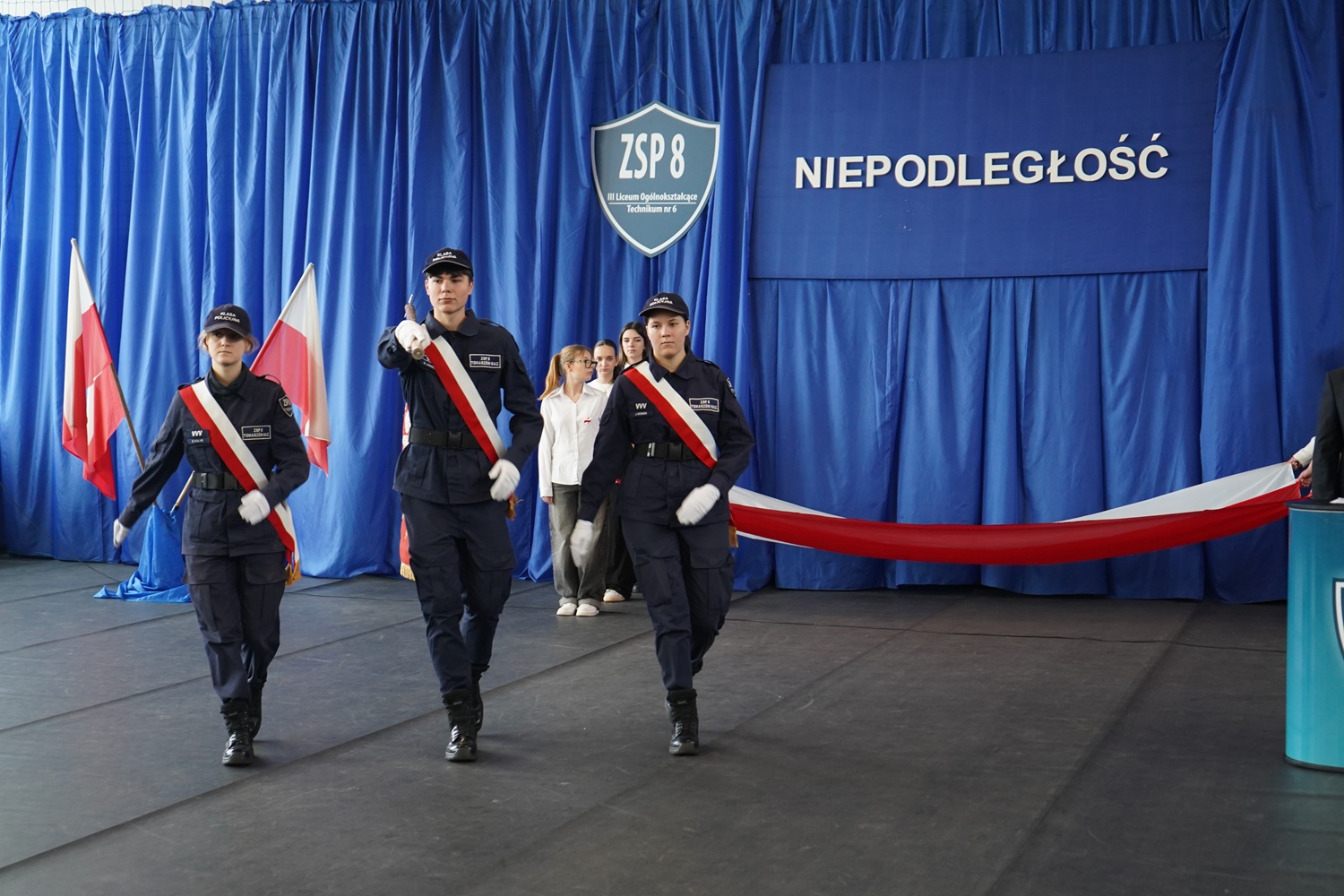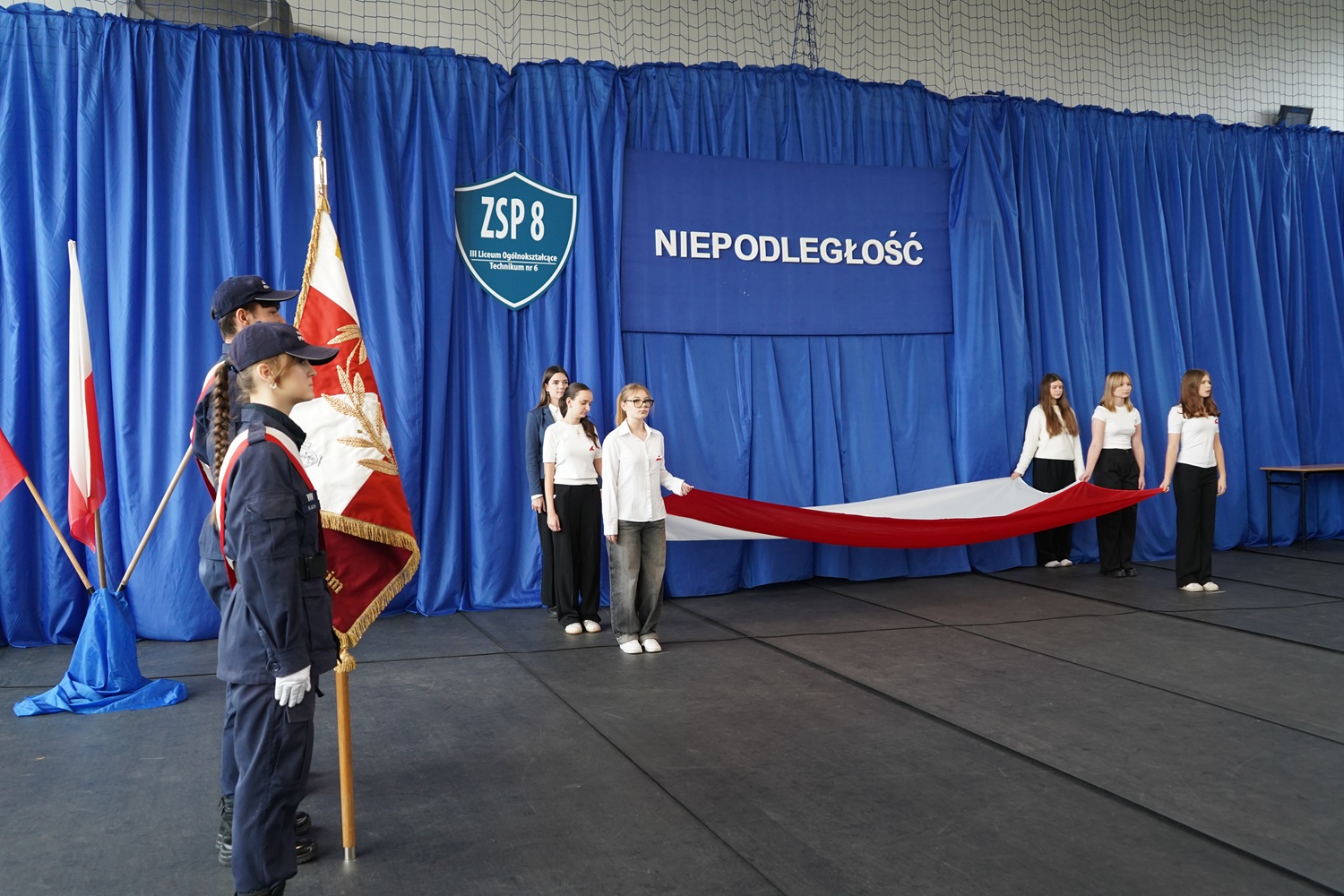 W środę 12 listopada 2025r. w Zespole Szkół Ponadpodstawowych nr 8 odbył się uroczysty apel z okazji 107. rocznicy odzyskanie Niepodległości przez Polskę w 1918r. W trakcie apelu zgromadzeni wspólnie odśpiewali hymn narodowy, następnie wysłuchali rysu historycznego dotyczącego genezy i powstania II Rzeczypospolitej, który zaprezentowała Wiktoria Burchard -klasa I A. Całą Akademię poprowadził Adrian Sobierski -klasa 3 B. W trakcie apelu podsumowano również dwa konkursy historyczne przygotowane przez nauczycieli historii: p.Piotra Dębickiego, p.Mariusza Banaszczaka, p.Waldemara Fijałkowskiego i p.Tomasza Antczaka. W konkursie dotyczącym Odzyskania Niepodległości przez Polskę , w którym udział wzięło 465 uczniów, a zwycięzcami zostali: