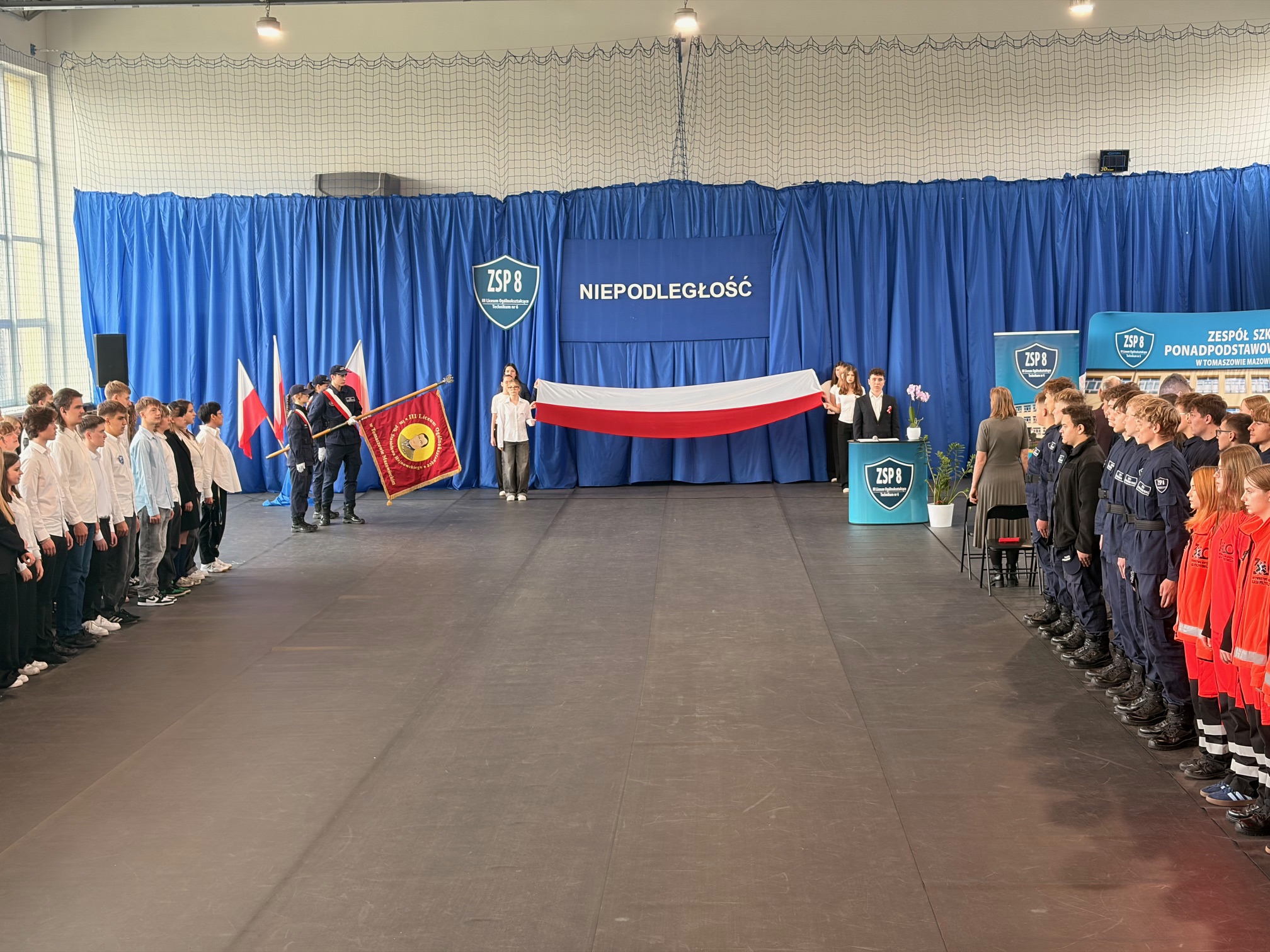 W środę 12 listopada 2025r. w Zespole Szkół Ponadpodstawowych nr 8 odbył się uroczysty apel z okazji 107. rocznicy odzyskania Niepodległości przez Polskę w 1918r. W trakcie apelu zgromadzeni wspólnie odśpiewali hymn narodowy, następnie wysłuchali rysu historycznego dotyczącego genezy i powstania II Rzeczypospolitej, który zaprezentowała Wiktoria Burchard -klasa I A. Całą akademię poprowadził Adrian Sobierski -klasa 3 B. W trakcie apelu podsumowano również dwa konkursy przygotowane przez nauczycieli historii: p.Piotra Dębickiego, p.Mariusza Banaszczaka, p.Waldemara Fijałkowskiego i p.Tomasza Antczaka. W konkursie dotyczącym Odzyskania Niepodległości przez Polskę, udział wzięło 465 uczniów, a zwycięzcami zostali: