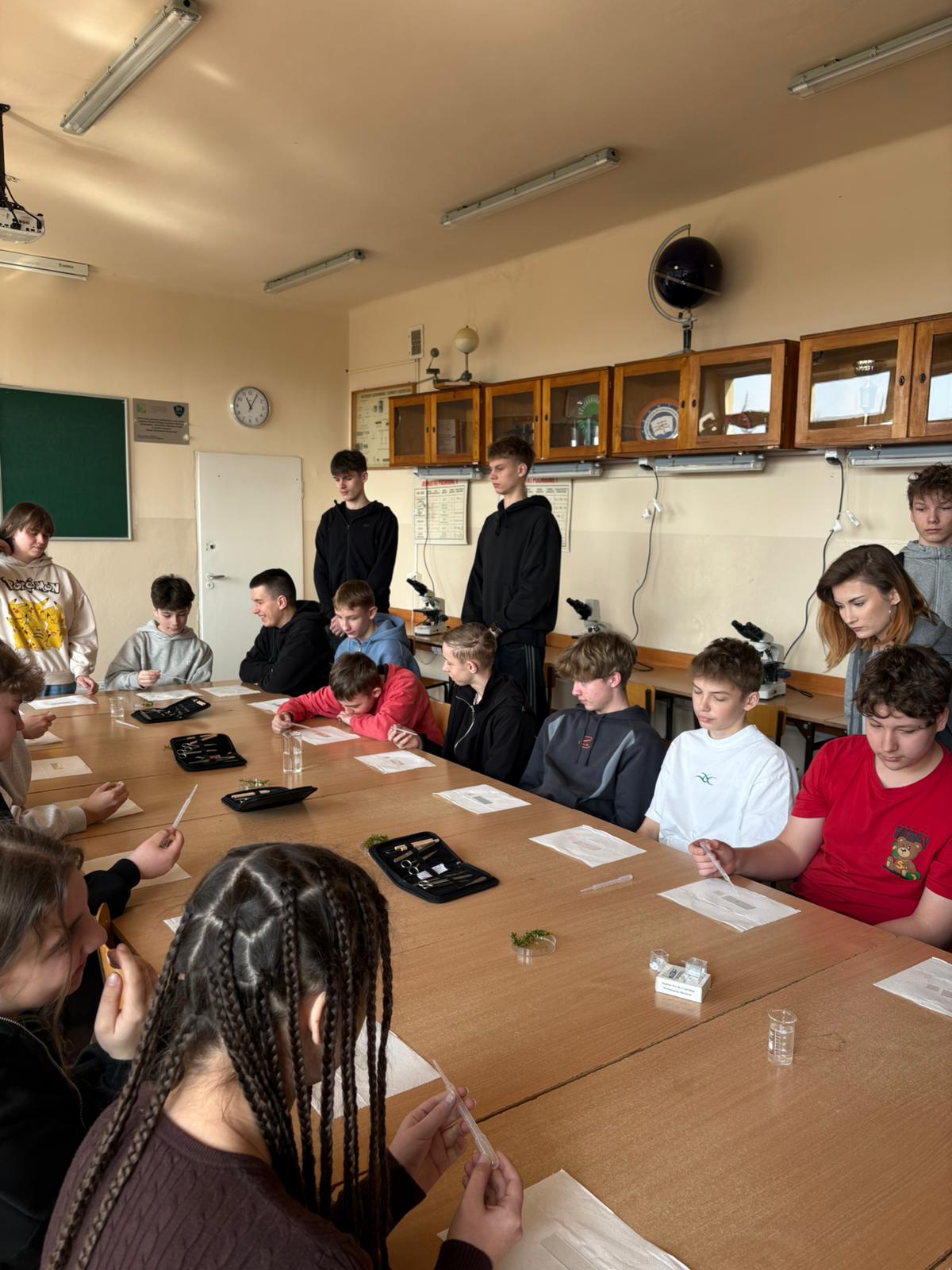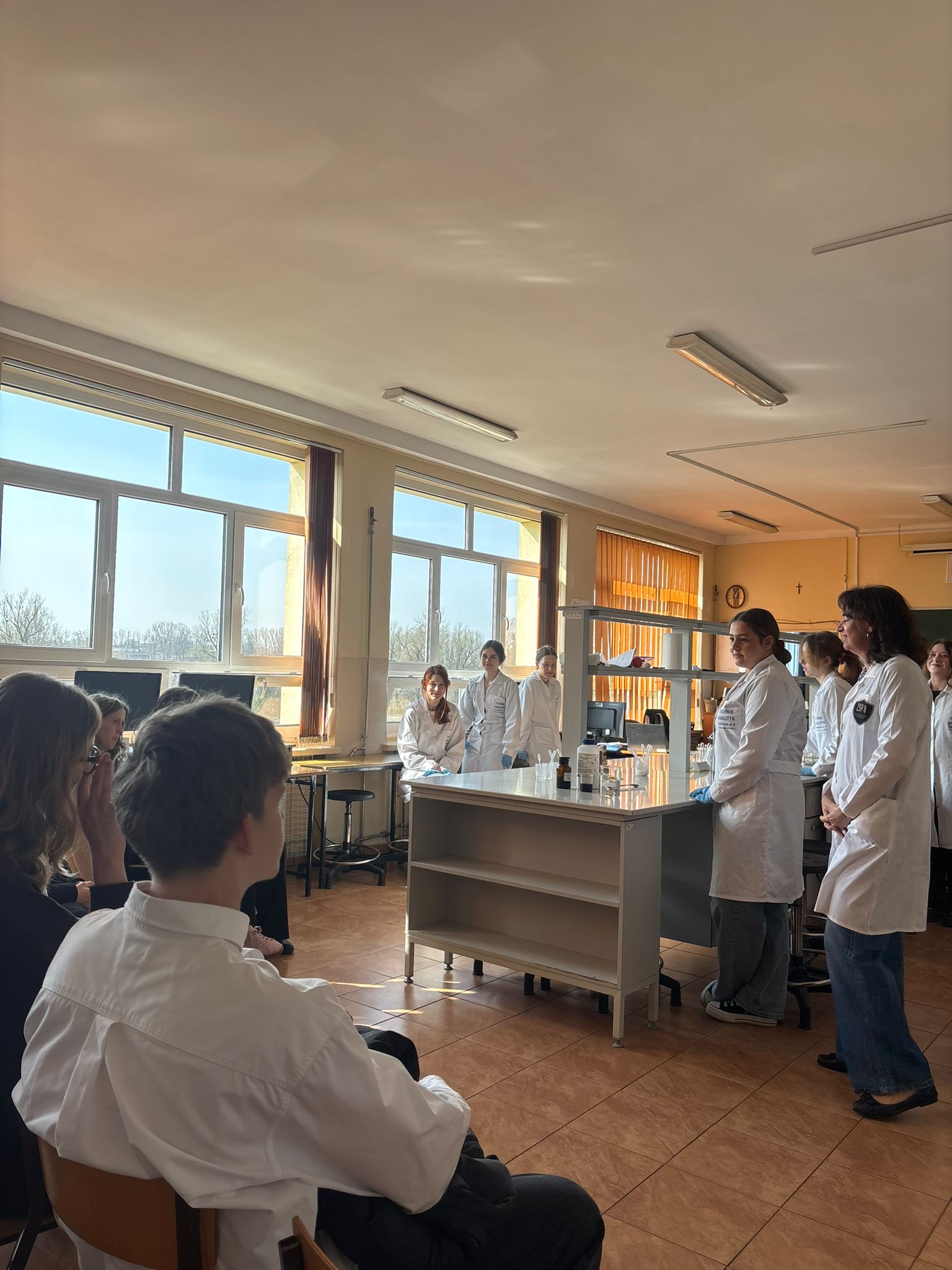 Uczniowie klas trzecich technikum analitycznego zaprezentowali ciekawe doświadczenia chemiczne przygotowane z tej okazji. Z kolei uczniowie technikum architektury krajobrazu przedstawili informacje na temat kierunku kształcenia, natomiast uczniowie klasy przyrodniczej w sali 102 przeprowadzili zajęcia z mikroskopowania.