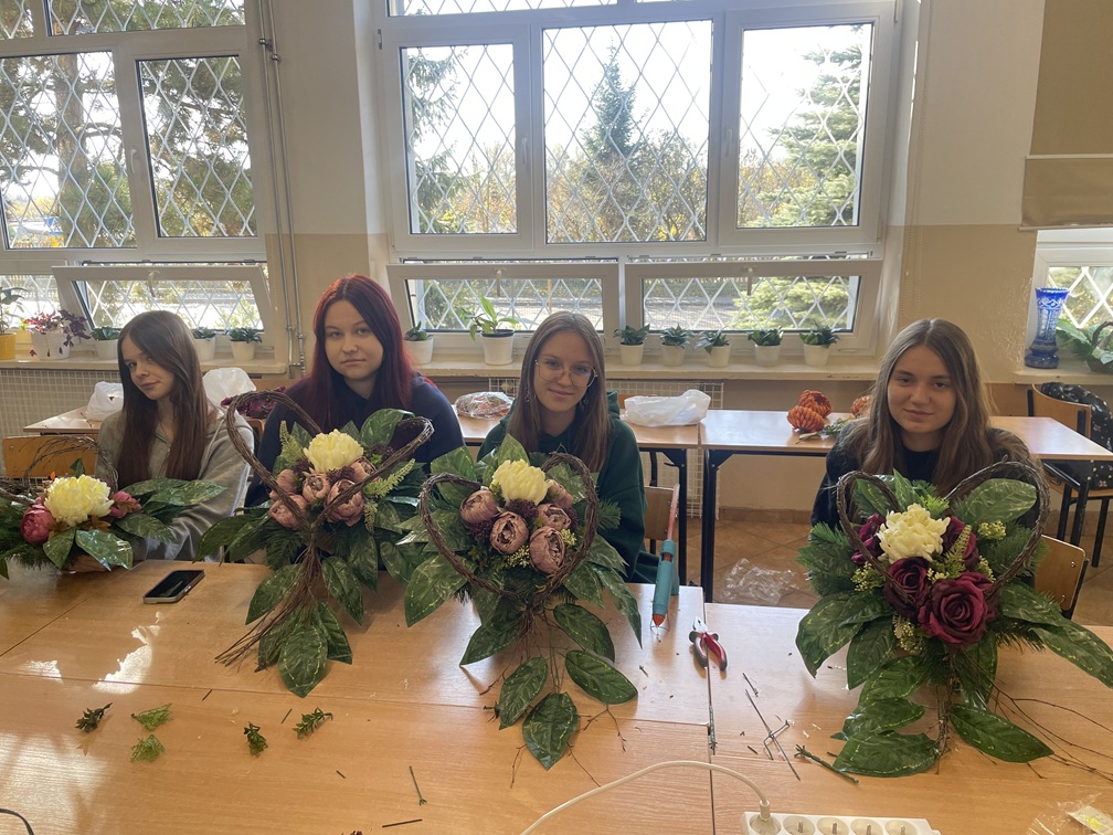 Tematyka warsztatów była ściśle związana z nadchodzącym Świętem Zmarłych. Młodzież miała okazję własnoręcznie wykonać stroiki i wiązanki nagrobne, które następnie mogli zabrać i postawić na grobach swoich bliskich. Praca nad kompozycjami była nie tylko praktycznym ćwiczeniem zawodowych umiejętności, ale też piękną lekcją pamięci i szacunku wobec tradycji.