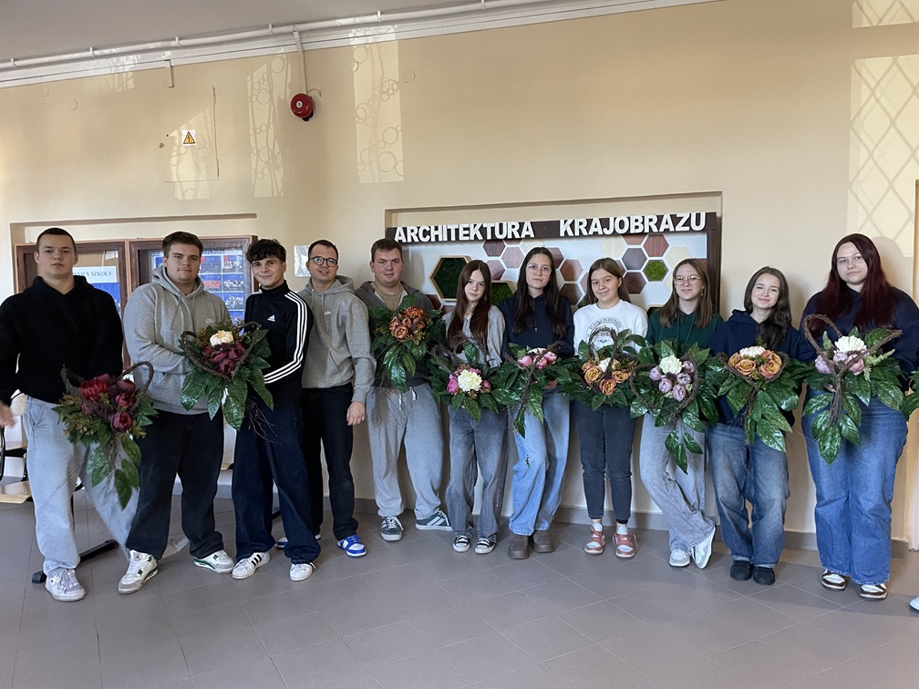 W ostatnim tygodniu października uczniowie technikum architektury krajobrazu z Zespołu Szkół Ponadpodstawowych nr 8 w Tomaszowie Mazowieckim wzięli udział w wyjątkowych warsztatach florystycznych, które odbyły się w ramach zajęć z praktycznej nauki zawodu. Zajęcia poprowadził Pan Bartosz Łyś.