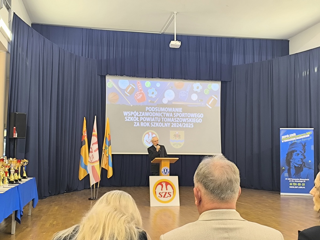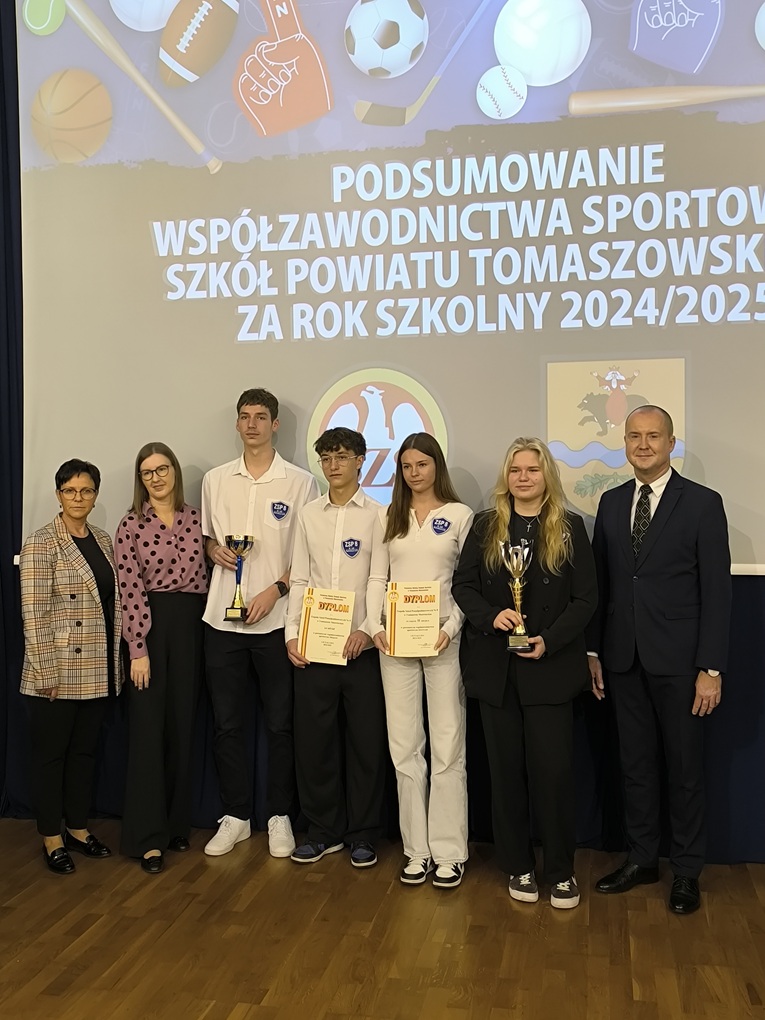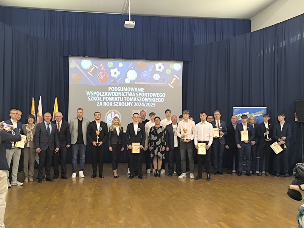 W dniu 24 października 2025er reprezentacja uczniów naszej szkoły wraz z nauczycielem wychowania fizycznego i wicedyrektorem p. Katarzyną Pfau wzięli udział w uroczystości podsumowania współzawodnictwa sportowego szkół powiatu tomaszowskiego w roku szkolnym 2024/2025, która odbyła się w Zespole Szkół Ponadpodstawowych nr 1.