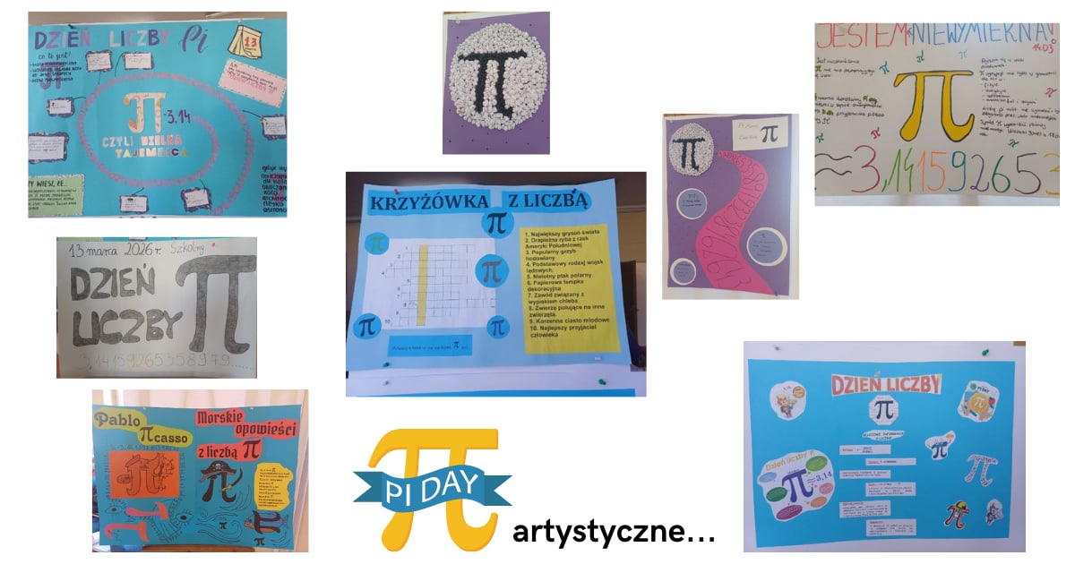 13 marca 2026 r. w naszej szkole obchodziliśmy Szkolny Dzień Liczby π – wyjątkowe święto wszystkich miłośników matematyki. Tego dnia nie zabrakło kreatywności, dobrej zabawy i... słodkości! Uczniowie wzięli udział w konkursach: plastycznym – na plakat, grafikę lub rebus związany z liczbą π ,literackim – na wiersz, fraszkę lub rymowankę o liczbie π , konkursie pamięciowym – polegającym na recytacji z pamięci jak największej liczby cyfr rozwinięcia dziesiętnego liczby π. Dodatkowo podczas lekcji uczniowie rozwiązywali zagadki matematyczne związane z liczbą π, wykonywali rysunki w biegunowym układzie współrzędnych, podejmowali zadania z kodowania oraz grali w gry planszowe, w których liczba π odgrywała główną rolę. Dużym zainteresowaniem cieszyła się także kawiarenka charytatywna, w której można było spróbować pysznych ciast, babeczek i ciasteczek inspirowanych liczbą π. Dochód z kawiarenki charytatywnej zostanie przeznaczony na wsparcie leczenia Kingi Sobieraj. Tego dnia obowiązywał także wyjątkowy przywilej – uczniowie ubrani w fioletowe elementy stroju mogli czuć się bezpiecznie… nie byli pytani! Dziękujemy wszystkim uczniom za zaangażowanie, kreatywność oraz udział w wydarzeniu, a nauczycielom za organizację tego matematycznego święta. To był dzień pełen liczb, uśmiechu i dobrej energii!
