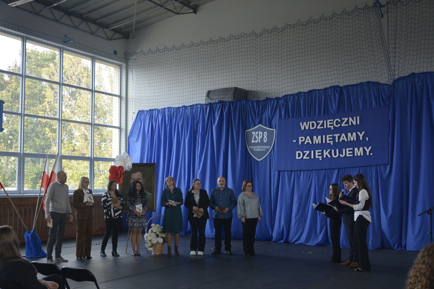 10 października 2025 roku w Zespole Szkół Ponadpodstawowych nr 8 w Tomaszowie Mazowieckim odbyła się wyjątkowa uroczystość pod hasłem: „Wdzięczni – pamiętamy, dziękujemy”. Tego dnia społeczność szkolna połączyła dwa ważne wydarzenia – Święto Patrona szkoły, pułkownika Stanisława Hojnowskiego, oraz Dzień Edukacji Narodowej.